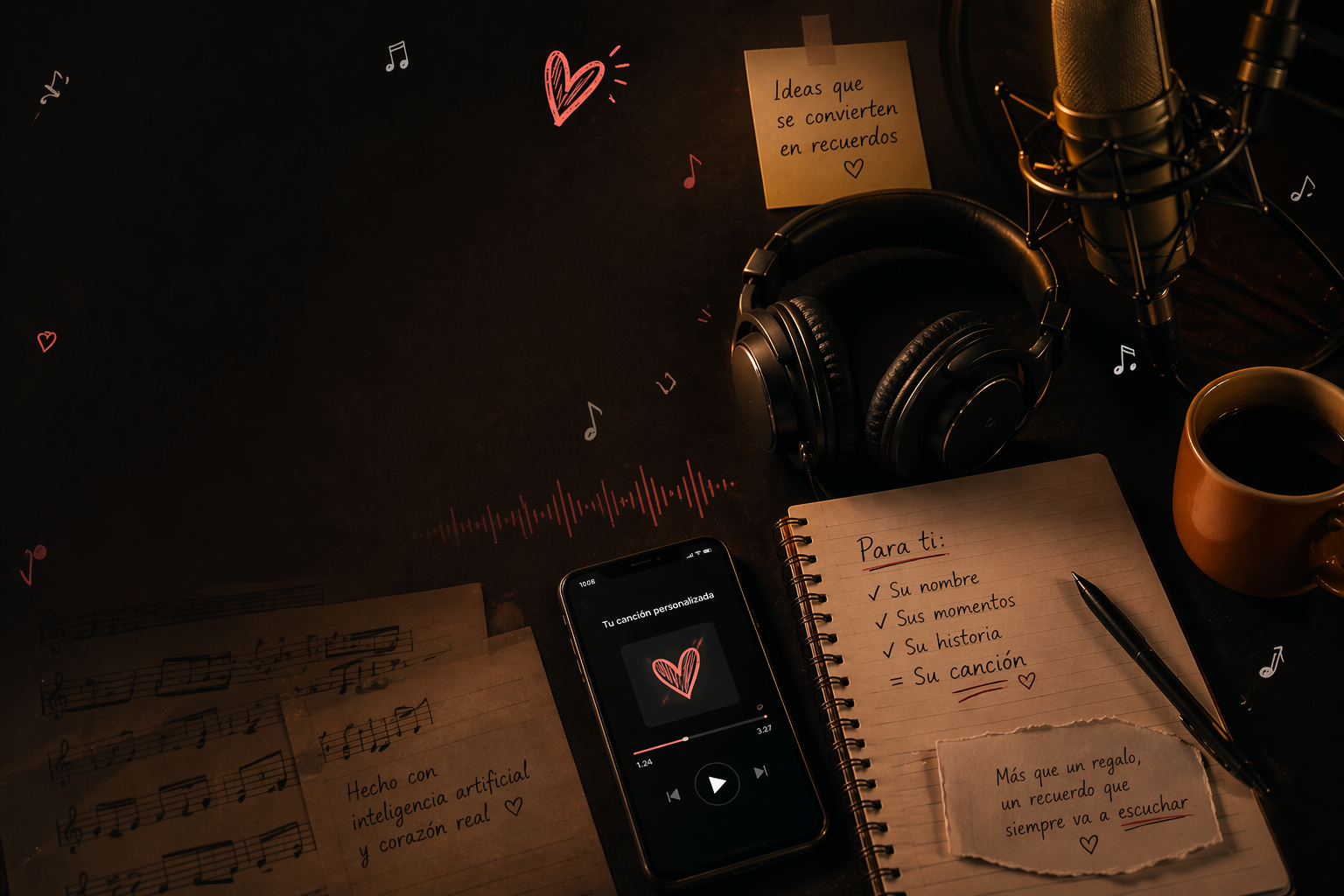 Nuestro equipo compone y produce tu canción con calidad pro en tiempo récord. Sin complicaciones.